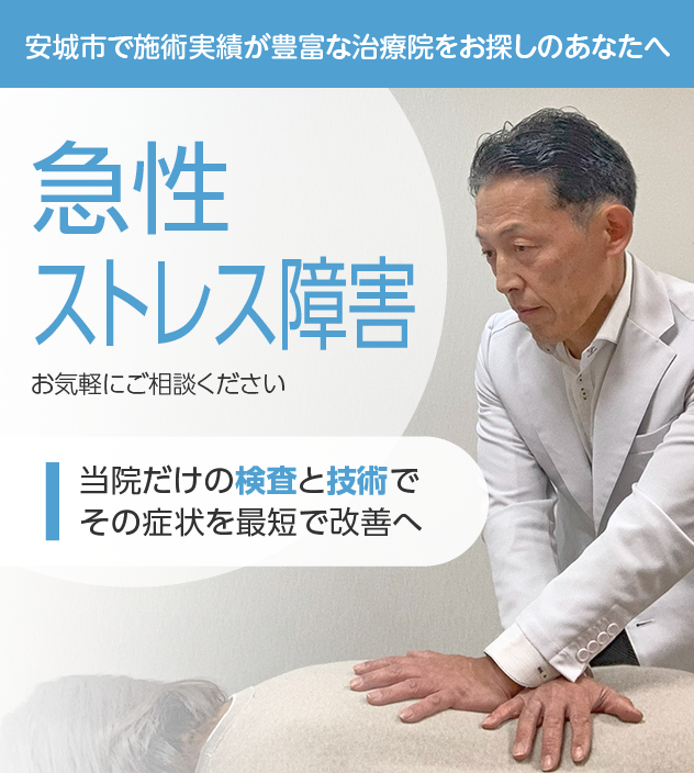 病院やほかの治療院で改善しなかったとしても諦める必要はありません。急性ストレス障害でお困りなら経験豊富な施術実績を誇る当院にお任せください。
