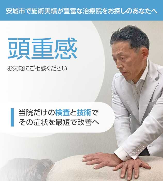 当院では、整体や鍼灸を組み合わせ、頭重感を最短で改善に導きます。