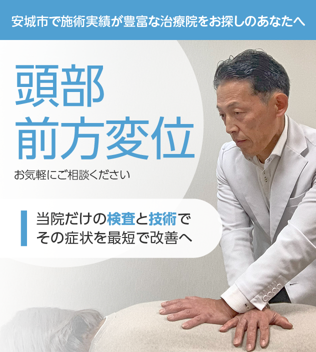 当院の施術は頭部前方変位と非常に相性がよく、劇的に改善するケースも見られます。