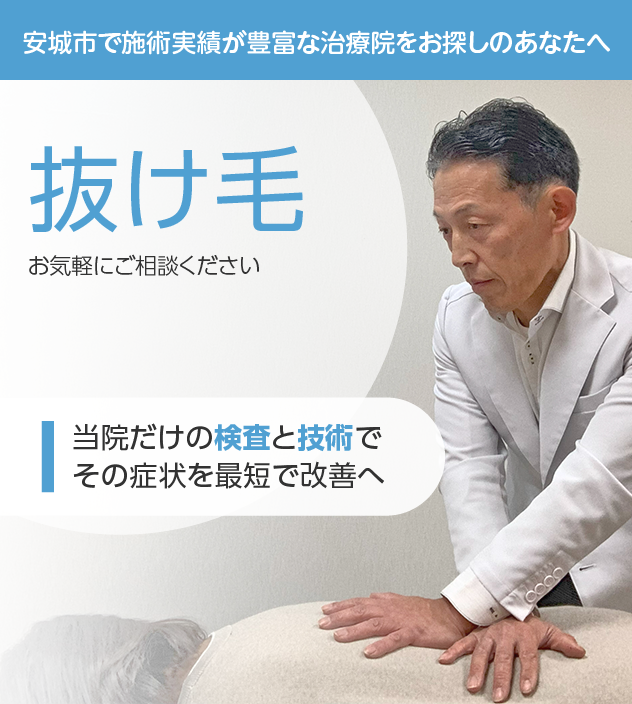 抜け毛でお困りなら、豊富な施術実績を誇る当院にお任せください。