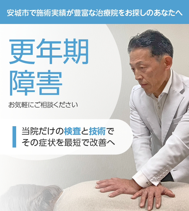 当院では、整体や鍼灸を組み合わせ、更年期障害を最短で改善に導きます。
