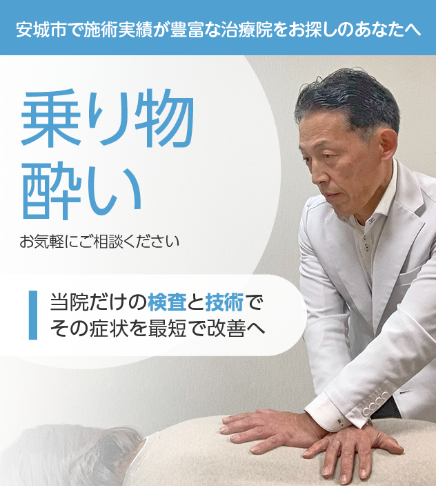 病院やほかの治療院で改善しなかったとしても諦める必要はありません。乗り物酔いでお困りなら経験豊富な施術実績を誇る当院にお任せください。