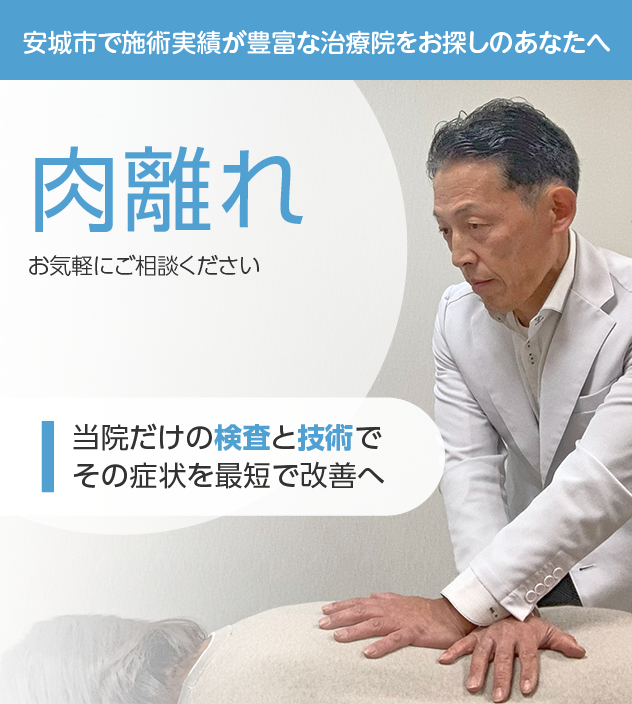 肉離れは早めに対処すればするほど、改善までの期間も早くなります。あなたが心身ともに健やかな毎日を取り戻して、人生がより豊かになるように全力でサポートいたします。