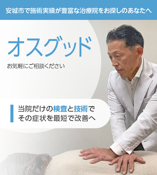 病院やほかの治療院で改善しなかったとしても諦める必要はありません。オスグット病でお困りなら経験豊富な施術実績を誇る当院にお任せください。