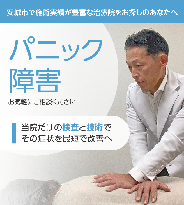 当院では、パニック障害だけを診るのではなく体全身からメンタル状態までを診ていくことで施術実績を上げてきました。