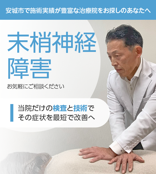 当院では、整体や鍼灸を組み合わせ、末梢神経障害を最短で改善に導きます。