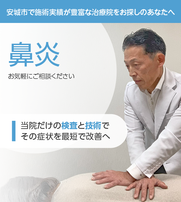 病院やほかの治療院で改善しなかったとしても諦める必要はありません。鼻炎でお困りなら、豊富な施術実績を誇る当院にお任せください。