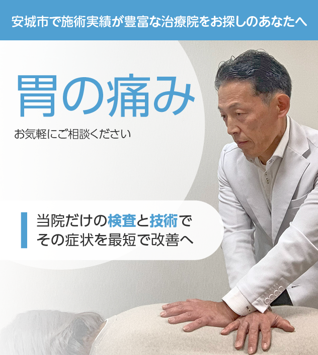 当院の施術は胃の痛みと非常に相性がよく、劇的に改善するケースも見られます。