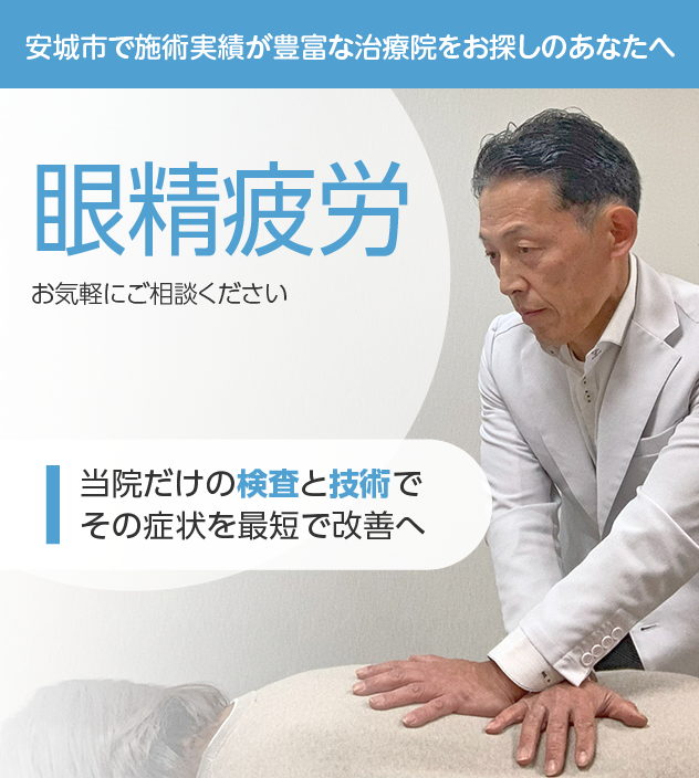 病院やほかの治療院で改善しなかったとしても諦める必要はありません。眼精疲労でお困りなら経験豊富な施術実績を誇る当院にお任せください。
